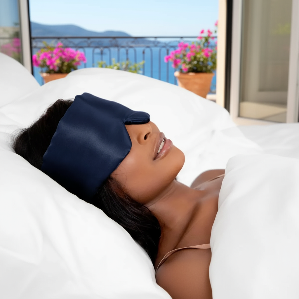 Bonnet — Taille : Réglable (~70 cm) — ajustement personnalisé, reste en place toute la nuit quand correctement posé.