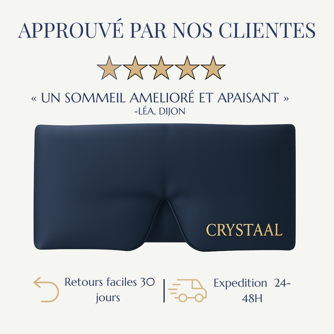« Un produit peut réellement améliorer la qualité du sommeil tout en restant agréable à utiliser. C’est le cas du Deep Sleep Mask Crystaal : un masque en soie de mûrier, lavable et d’une douceur exceptionnelle, qui bloque la lumière sans effort et favorise un endormissement plus serein. Idéal au lit comme en voyage, son toucher frais crée un environnement propice au repos, partout. »
